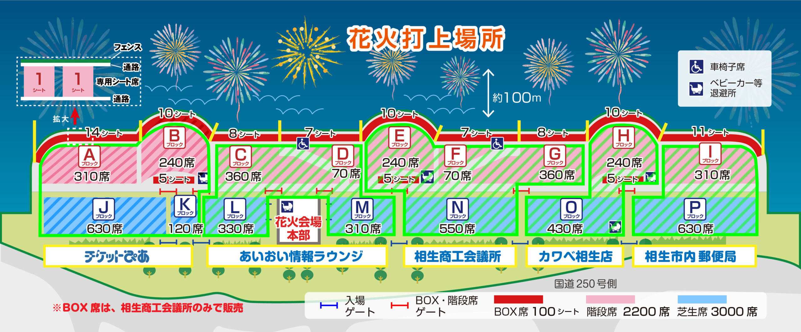 BOX席は、全席指定席で、相生商工会議所のみでの販売となりますので、ご注意ください。